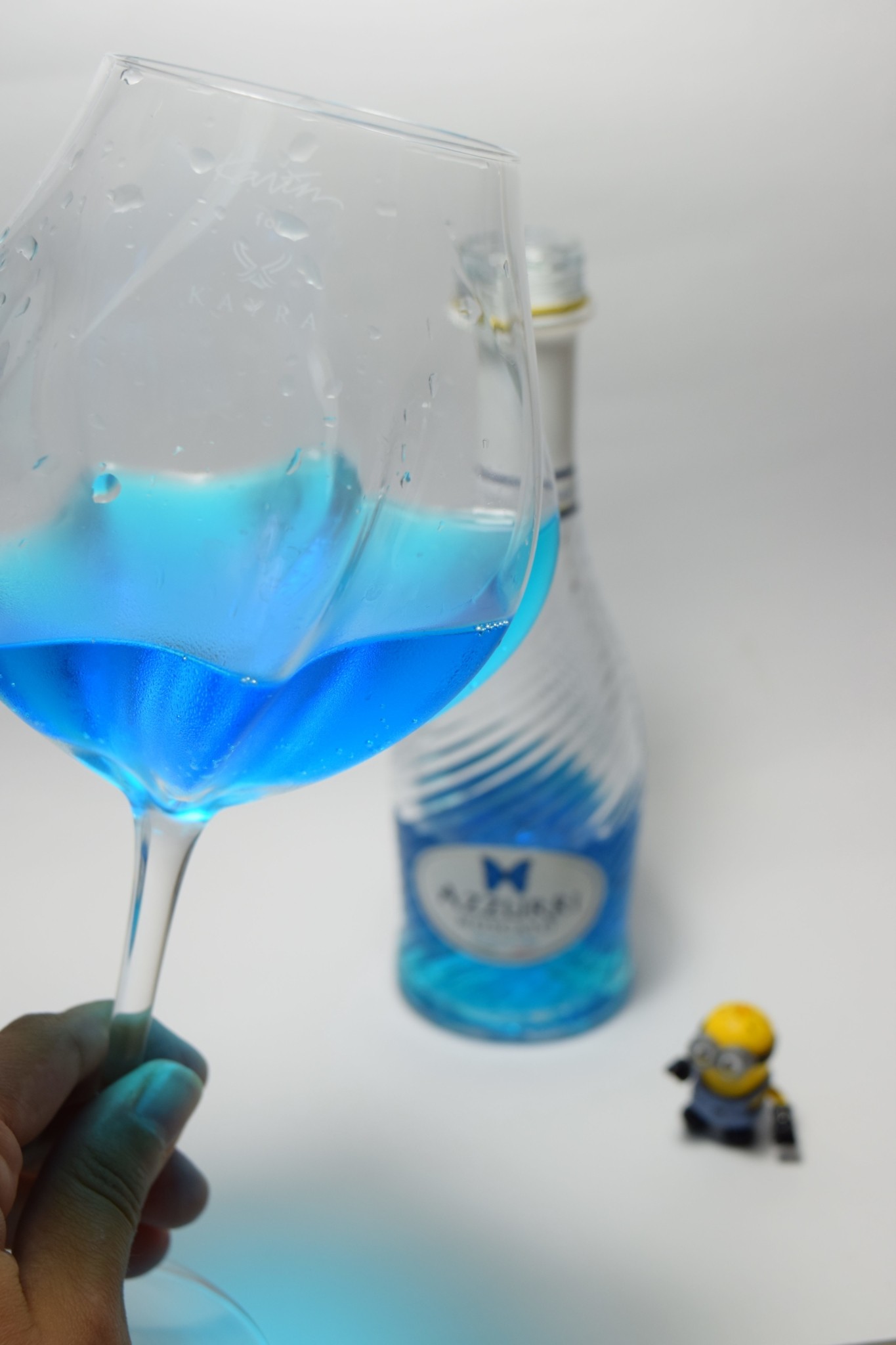 Satın almış olduğum mavi şarap İtalya menşeili. Üzerinde aromalı şarap ürünü ibaresi yer alıyor. Muskat (Misket) üzümlerinden elde edilmiş mavi şarabın alkol oranı %5.5. Direkt burunda ve damakta misket üzümüne ait belirgin aromatik aromaları algılıyorsunuz. İçerisinde %75 oranında şarap geri kalanında aroma ve E133 Parlak Mavi gıda boyası içeriyor. Yani ne kadar doğal siz düşünün! Hafif gazlı bir içecek çünkü şekerli olduğu için muhtemelen şekeri dengelemesi amacıyla karbondioksit gazını basmışlar ama buna rağmen iç bayıltıcı. Beğenmedim. Çevir aç kapak. Kapağı açarken zaten gaz basıncını hissediyorsunuz. Mavi şarap tamamiyle bir pazarlama ürünü. Çok ses getireceğine inanmıyorum. Muhtemelen şarap içemeyen kitleyi kazanmak biraz şeker ve gazla içimi kolaylaştırarak şarap bazlı aromalı + gıda boyası katkılı bir ürün ortaya atmışlar. Herkes meraktan bir kez deneyebilir ama sürekli tüketebilecek bir ürün değil.